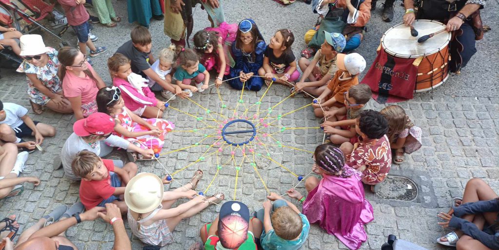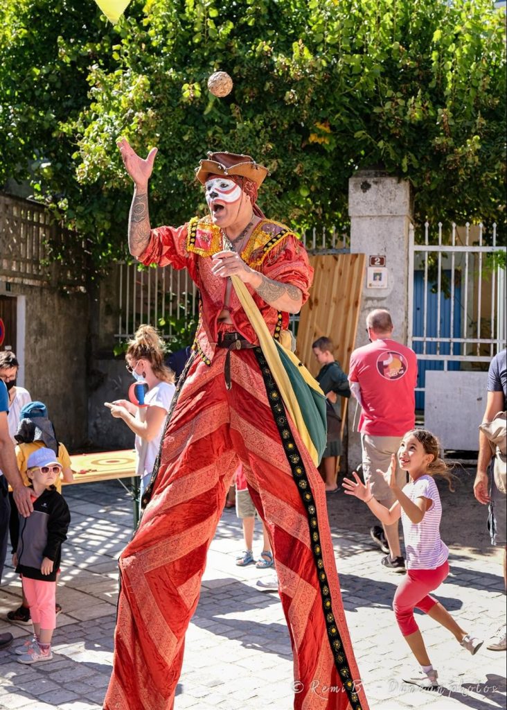 - Animation de jour avec musique, jonglerie, contes-saynètes en complicité avec le public, en déambulation et ou en place fixe.