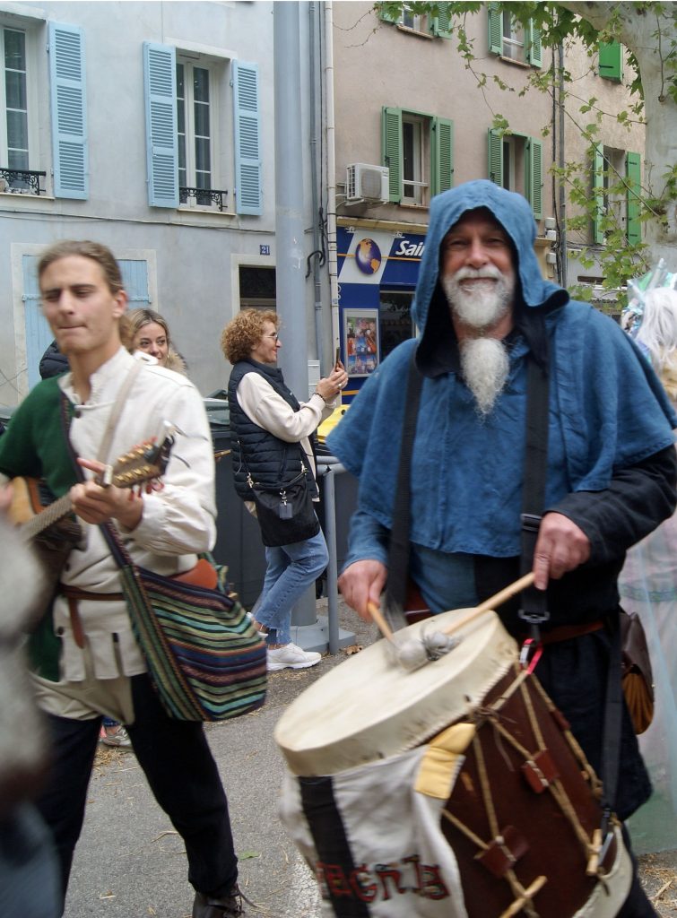 - Participation aux grands défilés, parades, de jour avec musique, jonglerie et possibilité en option d’échassiers